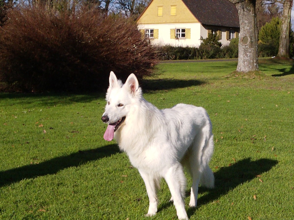 Eine Nachbarin, die selbst weiße Schäferhunde hatte, bot mir einen Abgabehund an. Ein weißer Langstockrüde Namens "Chicco". Sein Herrchen konnte krankheits bedingt nicht mehr für ihn sorgen. Er wäre ins Tierheim gekommen!